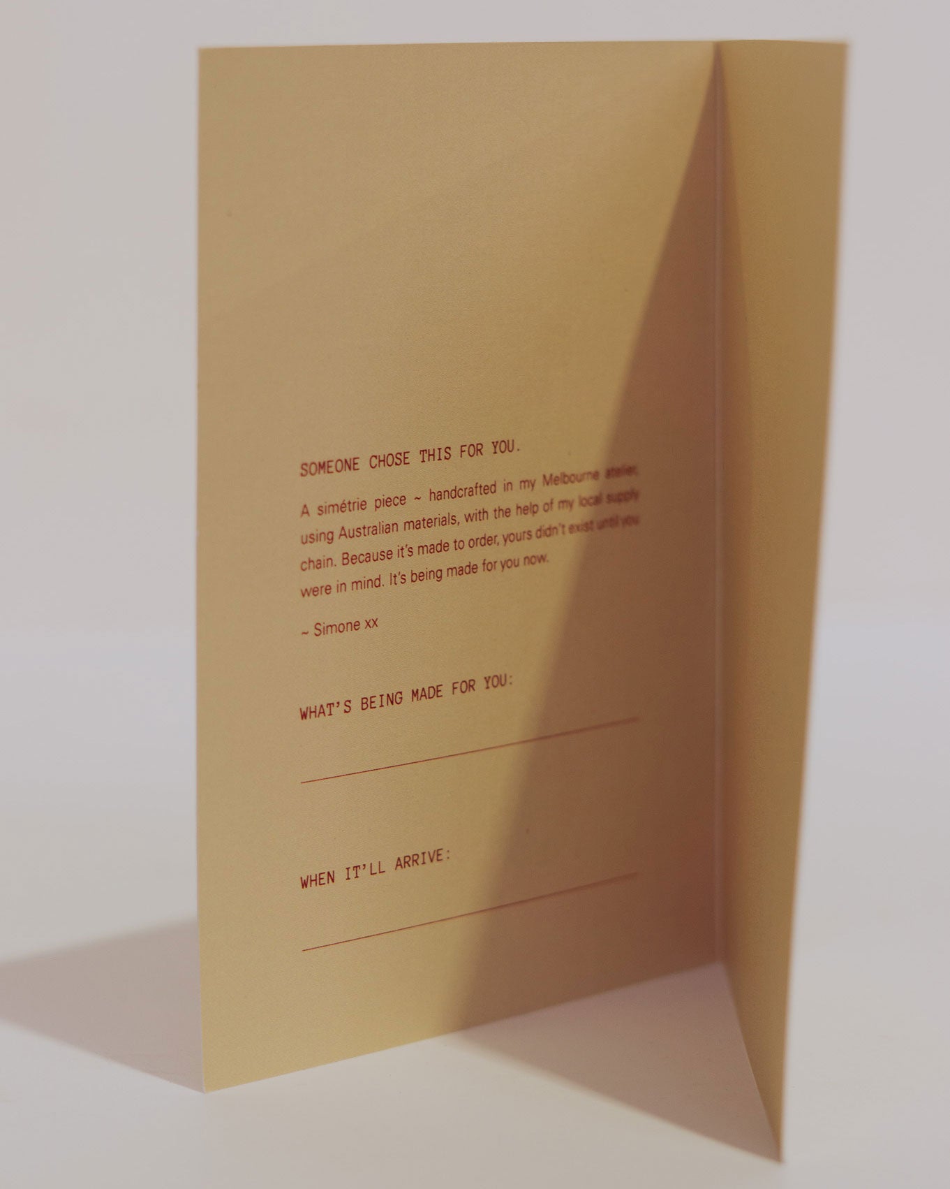 This will be posted to you complimentary, along with a picture of the design you ordered, building the excitement and anticipation for the item to arrive at a later date.
